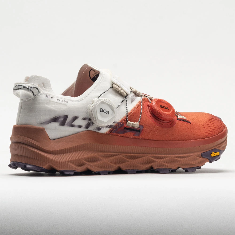 Hit the trails at high speeds in the Altra Mont Blanc BOA®! Built for racing, this off-road running shoe helps you run fast during long distance efforts. Slip into a light and breathable upper with a dual-dial BOA® Fit System for personalized comfort. Every stride on the Altra EGO™ Max provides lightweight comfort with an extra bounce to push the pace. The Vibram® LiteBase outsole uses micro and macro lugs for reliable grip whether you’re charging uphill or bombing downhill. For those who go fast, the Altra Mont Blanc BOA® is race-day ready!